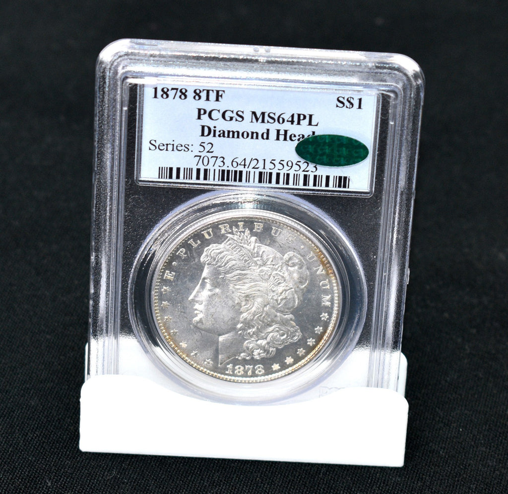 1878 8TF Morgan Silver Dollar MS 64 PL - CAC Certified - Graded by PCGS New