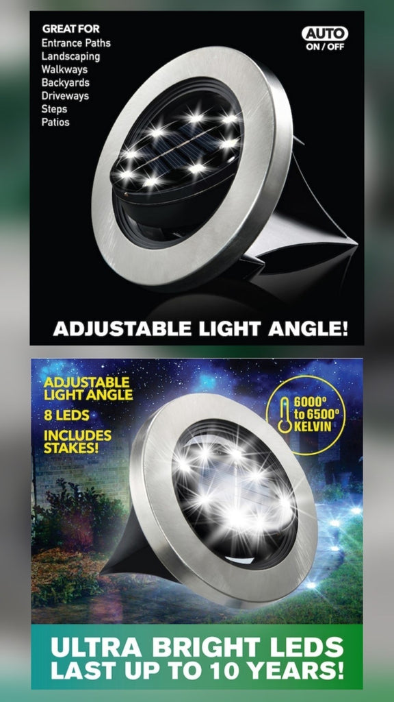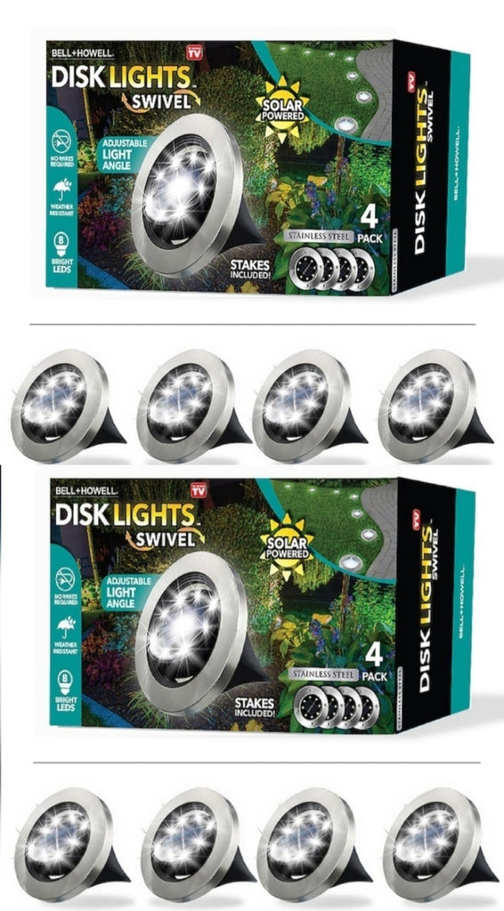 8 Pack Bell + Howell Deluxe Disk Lights Swivel LED Solar Powered Stainless Steel