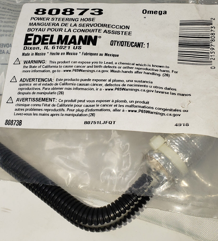 Edelmann 80873 Power Steering Line Hose Assembly | Omega 80873B New