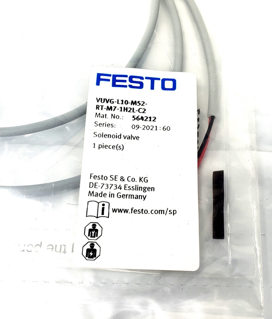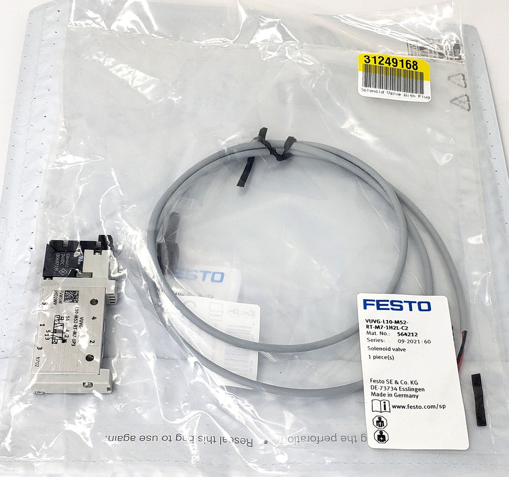 Festo VUVG-L10-M52-RT-M7-1H2L-C2 Solenoid Valve With Plug Socket Cable New