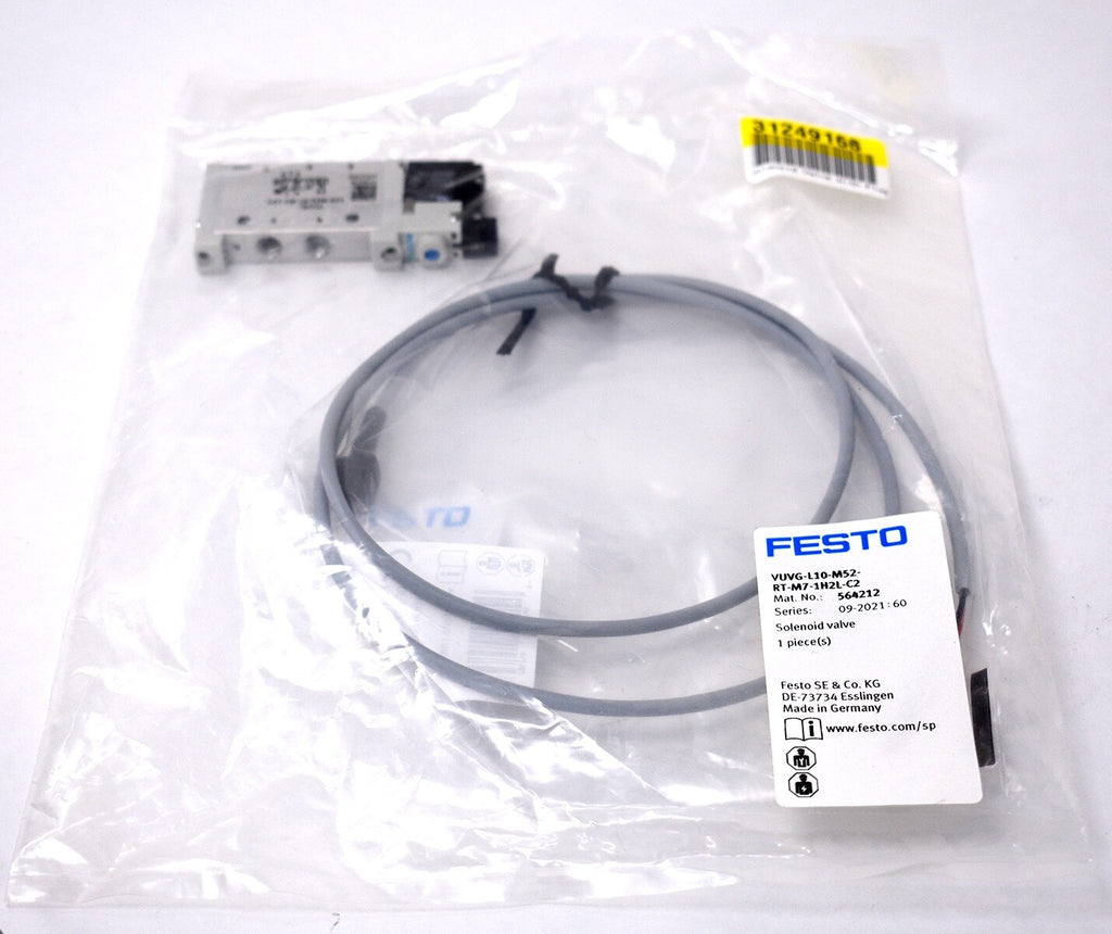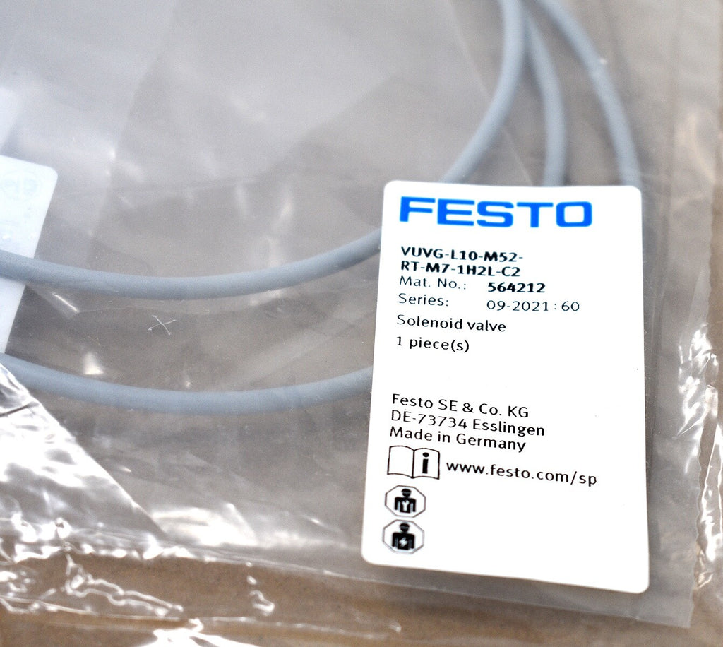 Festo VUVG-L10-M52-RT-M7-1H2L-C2 Solenoid Valve With Plug Socket Cable, 24VDC