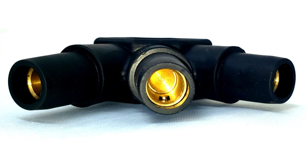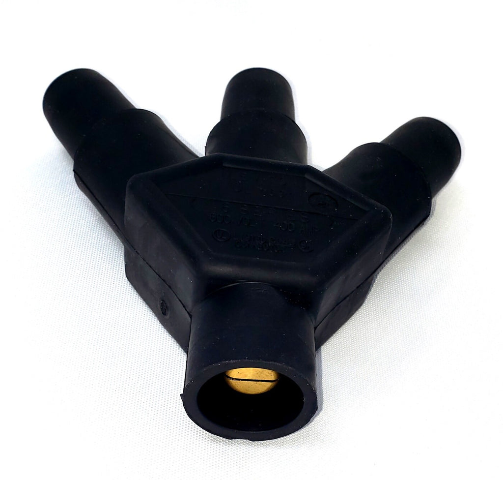 Description: 16 Series Cam Type Connector, Male to 3 Female Connectors, 400A, 600V