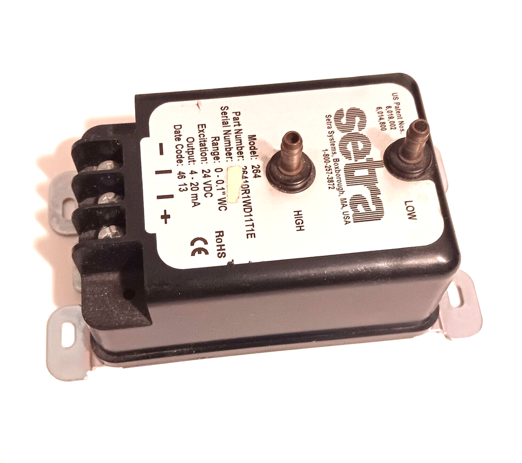 Setra 264 Pressure Transducer 24VDC 20mA 0.1" WC 26410R1WD11T1E