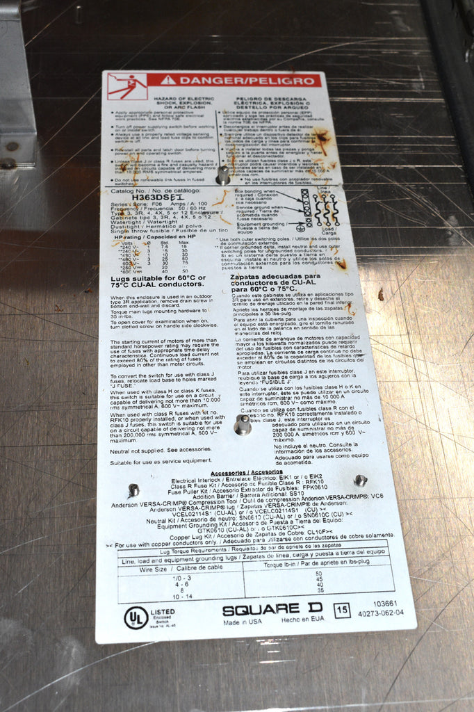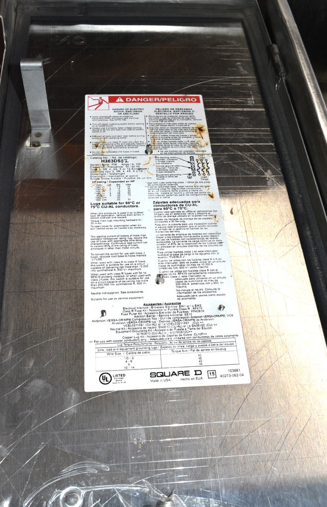 Square D H363DSEI 100 AMP 600 VOLT | STAINLESS STEEL FUSIBLE DISCONNECT